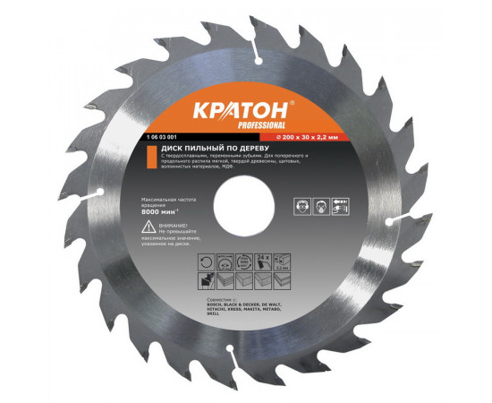 Для продольного и поперечного распила древесных пород применяется пильный диск Кратон PROFESSIONAL ø165 x 20/16 х 2,2 мм 24Т. Толщина рабочего полотна 2,2 мм. Может использоваться для быстрого и чистого реза ценных пород дерева. Изготовлен из твердосплавной стали, обладающей повышенной прочностью и износостойкостью. Прорези на рабочем полотне способствуют уменьшению шума, снижению вибрации, препятствуют возможному разлому или деформации при перегреве. Используется в качестве оснастки бытового и профессионального пильного инструмента.
