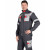 Куртка прямого силуэта, укороченная, с воротником стойка, с центральной застежкой на молния, накрытую ветрозащитным клапаном, застегивающимся на кнопки и липучку, с подрезными бочками, с верхними и нижними карманами, с притачным поясом с фигурной линией низа со стороны спинки. Рукава с притачными манжетами на кнопках. Полукомбинезон с застежкой гульфика на молнию и застежкой в правом боковом шве на пуговицы, с верхним накладным карманом и фигурным клапаном с патой на кнопку, с нижними внутренними боковыми карманами, с наколенниками, с накладным карманом на левом боковом шве с фигурным клапаном с патой на кнопке, с двумя задними карманами и карманами для инструментов, по спинке вставлена резинка. В костюме предусмотрен СОП шириной 50мм для обозначения сигнальной видимости.