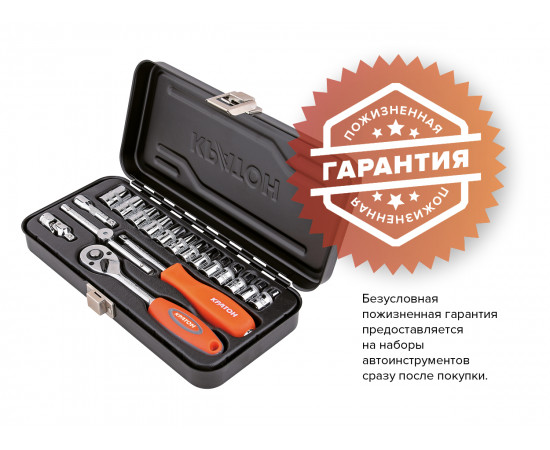 Набор инструментов Кратон TS-12 1/4" из 18 предметов для профессионального и домашнего использования. Базовый набор для стандартных работ. Присутствуют торцевые головки,рукоятка реверсивная и прямая, вороток Т-образный, шарнир карданный. Качественные и надежные инструменты из хром-ванадиевой стали. Для начинающих и профессиональных мастеров.