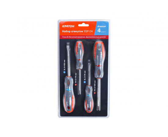 Набор отверток с двухкомпонентными рукоятками Кратон Premium SSP-04, 4 пр., блистер, шт