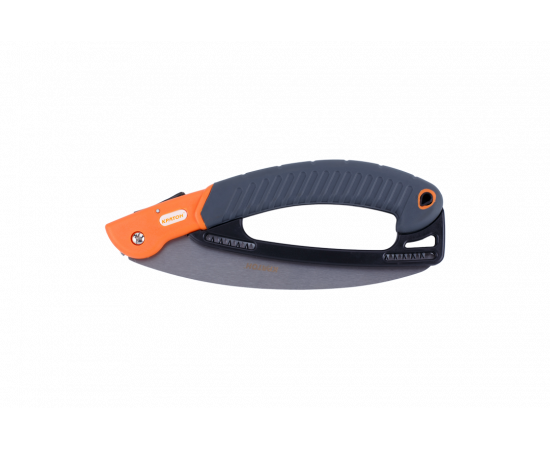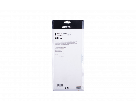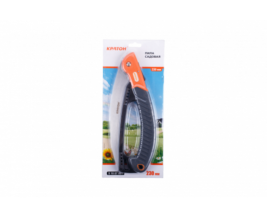 Садовая пила марки Кратон обладает сверхпрочной заточкой, благодаря чему она легко справляется с распилкой небольших веток и деревьев. Полотно выполнено из качественной стали, его длина составляет 230 мм. Общая длина инструмента – 610 мм, конструкция складная позволяет занимать немного места при хранении. Геометрия зубьев подходит для легкого пиления живых веток, осуществляет отвод стружки, и более плавный проход полотна. Двухкомпонентная рукоятка позволяет безопасно и эффективно работать.
