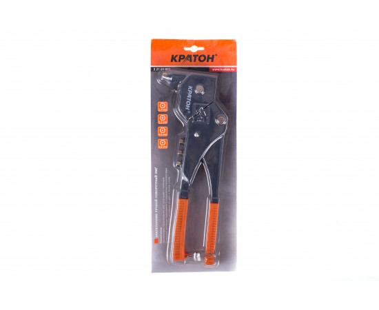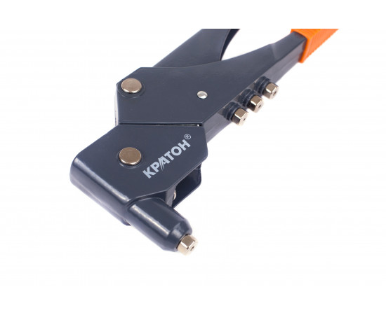 Поворотный заклепочник марки Кратон применяется мастерами для скрепления элементов из разных материалов между собой при помощи алюминиевых заклепок. Он имеет простую и эргономичную конструкцию, с эксплуатацией справится даже новичок. Заклепочник оснащен повортной головкой - от 0 до 360 градусов. Инструмент сделан из прочной стали, предусмотрены небольшие рукоятки с пластмассовыми накладками, которые позволяют надежно его захватить и при этом они не соскальзывают.